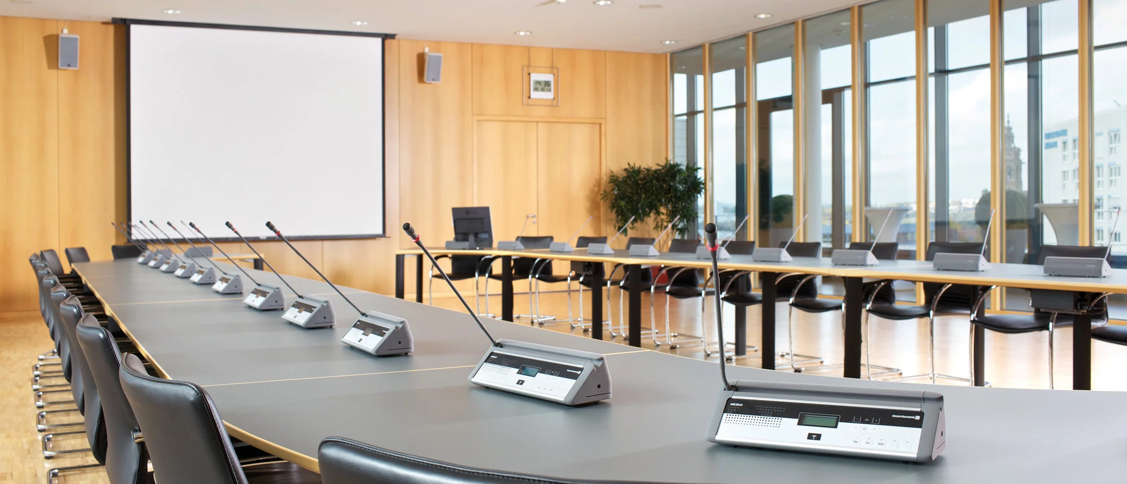 سیستم های کنفرانس Orbis و MCS-Digital ما بهترین راه حل های یکپارچه برای اتاق های هیئت مدیره هستند. کنفرانسهای بزرگتر با استفاده از این سیستمها امکان پذیر است. میکروفون های یکپارچه ، رنگ های مجزا و آرم ها از نظر زیبایی شناختی در جداول با کیفیت بالا و محیط های معماری یکپارچه هستند