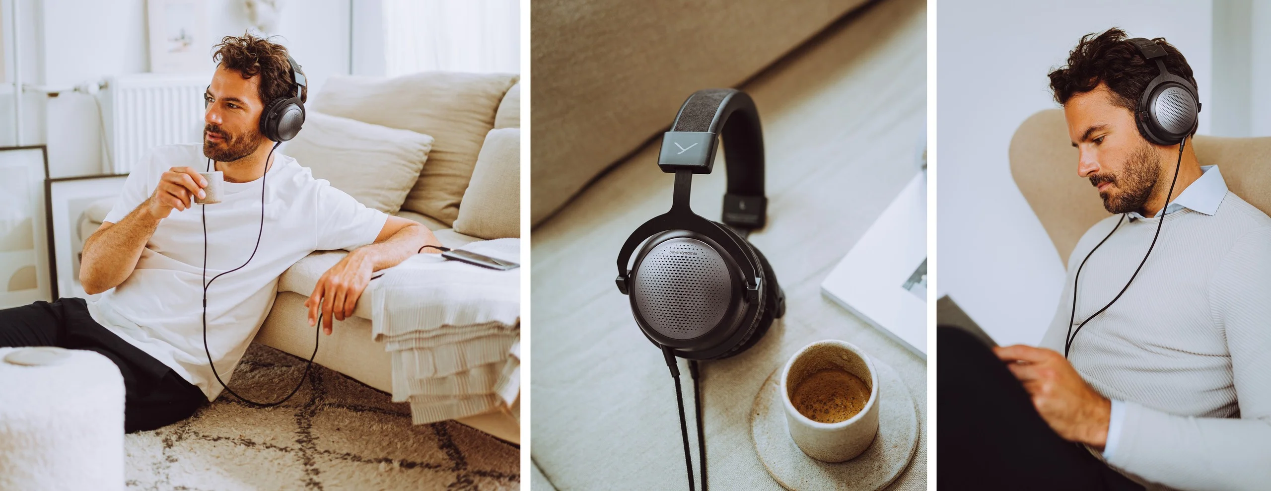 The open-back design of the T1 ensures the best, most natural spatial sound reproduction possible. The tilted arrangement of the drivers also contributes to the sense of spatiality. As a result, the music appears “in front” on centre stage, just like at a concert. As an alternative to the T1 model, the T5 model is available with a closed-back design.